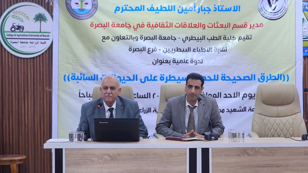 أقامت كلية الطب البيطري بجامعة البصرة ندوة حول الطرق الصحيحة للحد والسيطرة على الحيوانات السائبة، بالتعاون مع نقابة الأطباء البيطريين في البصرة، وبمشاركة عدد من المهتمين بمجال الرفق بالحيوان.