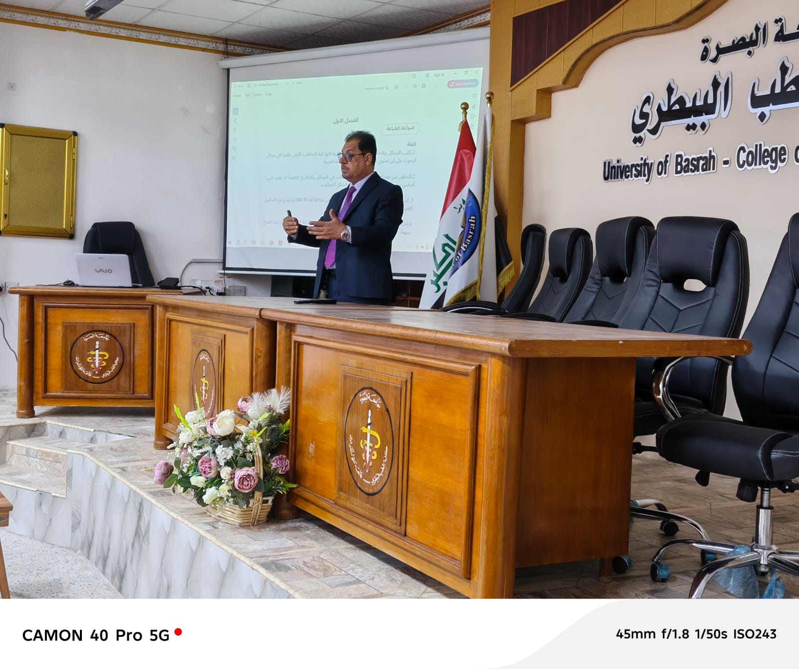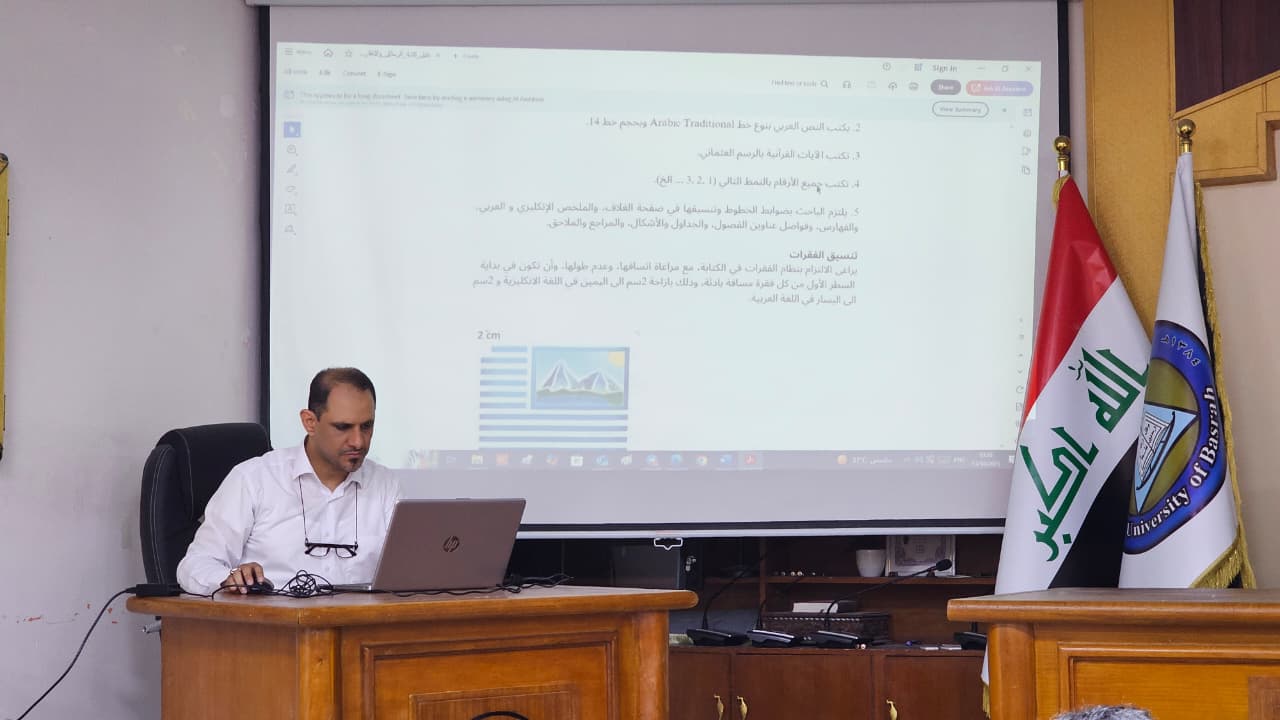 نظمت كلية الطب البيطري بجامعة البصرة ورشة عمل حول كتابة الرسائل والأطاريح وفق الضوابط الوزارية النافذة.