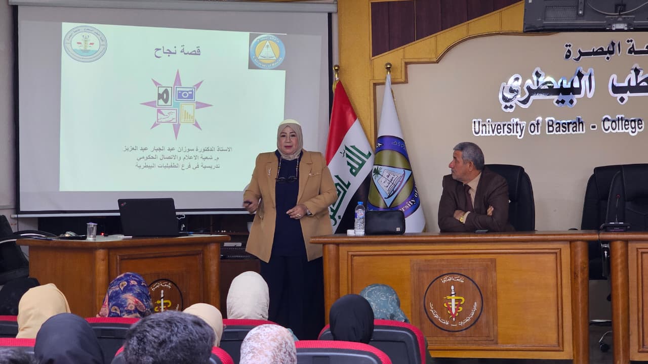 نظمت كلية الطب البيطري بجامعة البصرة ندوة تعريفية لطلبة المرحلة الأولى بعنوان "قصة نجاح".