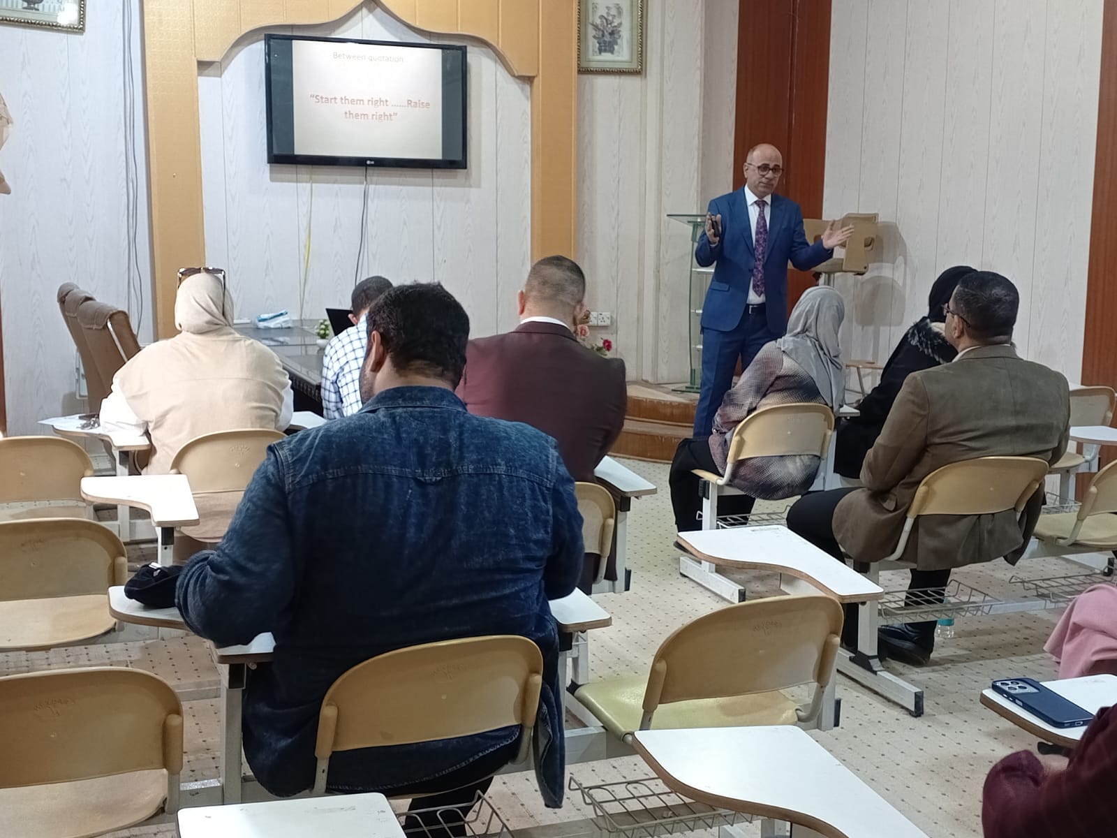 وتناولت المحاضرة التي قدمها الدكتور "نمير عبد الكريم خضير" مقارنة التركيب النسيجي والتشريحي لكرش العجول خلال فترات حياته، وكيفية تطوير فعالية الكرش في العجول الصغيرة بأسرع فترة ممكنة للاستفادة بإنتاج أسرع وأوفر.