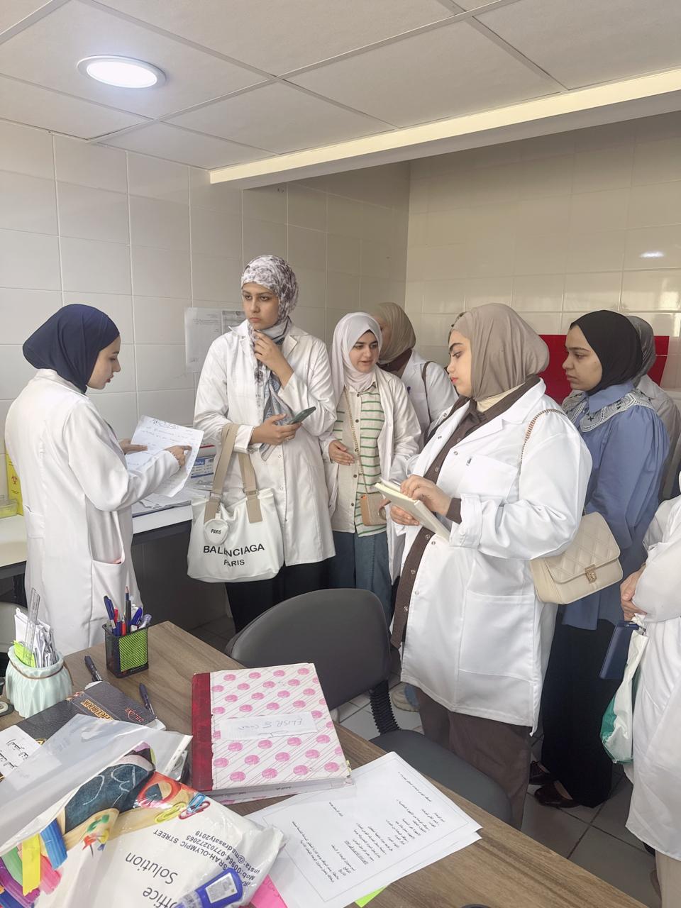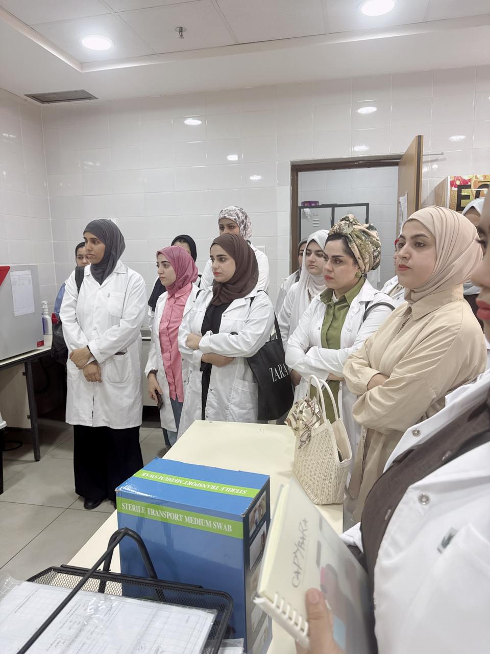 وهدفت الزيارة إلى تعريف الطلبة بجهازي الفايتك والاليزا الموجودين في مختبر البكتيريا في المستشفى، لما لهما من أهمية في إنجاز البحوث العلمية.