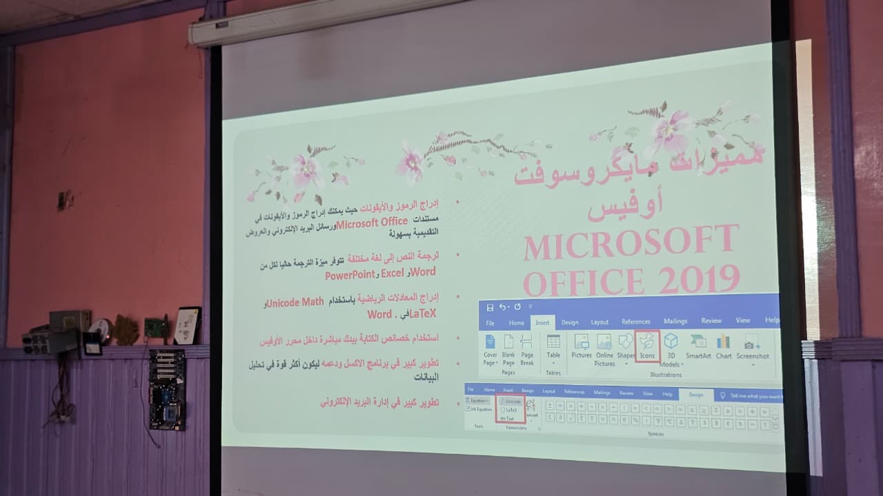 وشملت الدورة تدريباً على برامج الأوفيس مع التركيز على توظيفها في إنجاز الأعمال الإدارية والفنية بكفاءة أعلى.