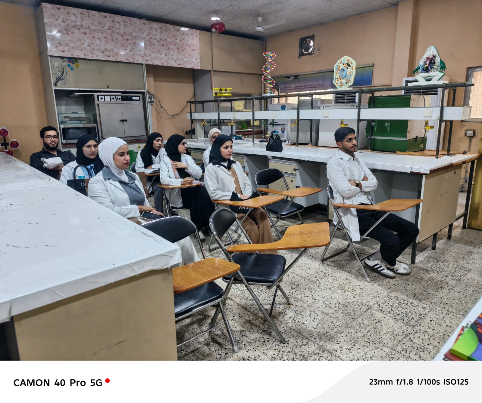 وقدمت كل من التدريسيتين نورس نوري وعلياء سبتي شرحاً وافياً وتفصيلياً للوفد الزائر عن آلية عمل الأجهزة مثل جهاز الـ PCR وجهاز الترحيل الكهربائي، فضلاً عن أجهزة التعقيم وكيفية التخلص من البقايا البيولوجية عند انتهاء التجربة.