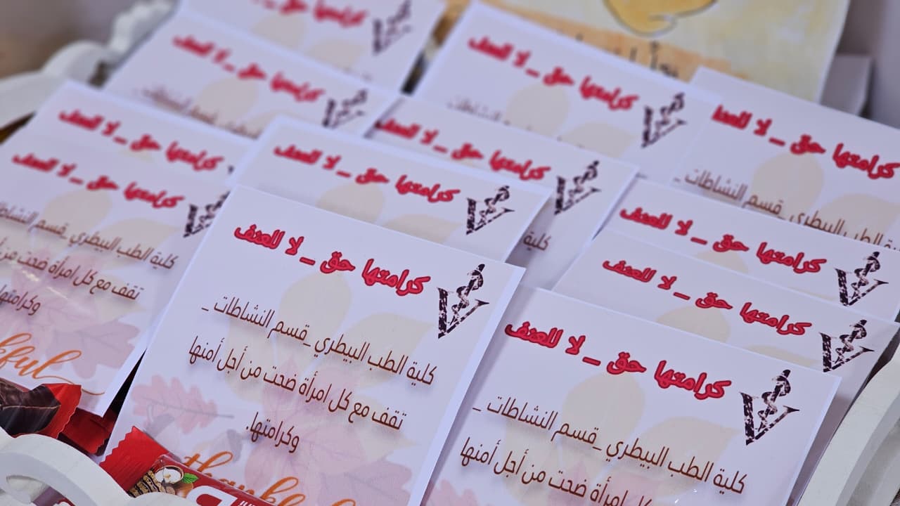 نظمت كلية الطب البيطري في جامعة البصرة مهرجاناً توعوياً طلابياً تحت شعار "كلا للعنف - الاحترام بداية السلام".